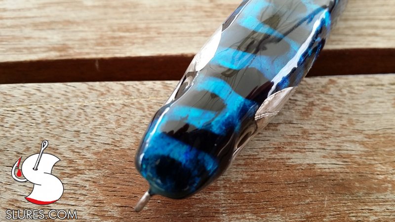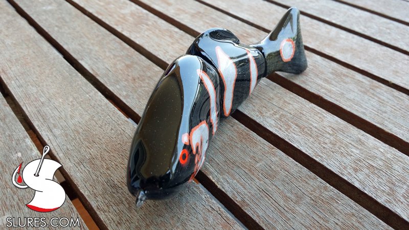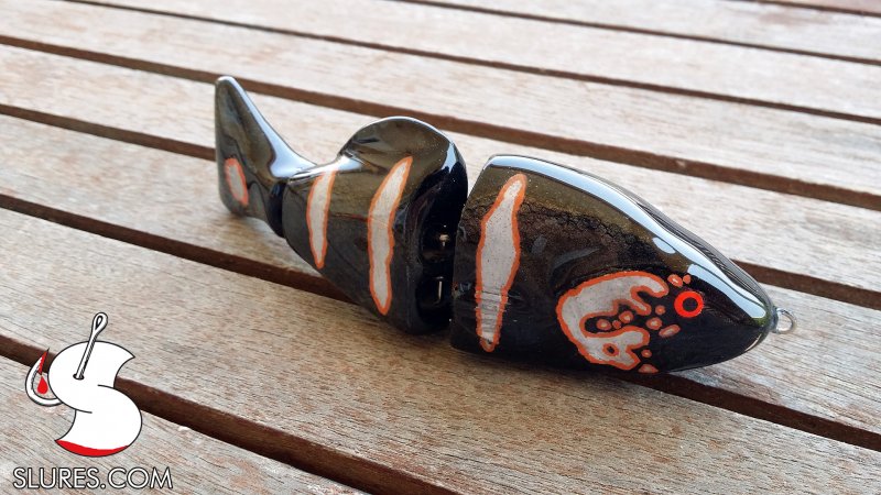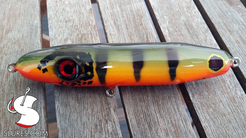 Voici le S.Classic Stick.125, 12.5cm pour 30g en bois, avec des python de 1.5mm. Il nage en WTD (Walking The Dog). Vous pouvez découvrir sa nage dans la vidéo ci-dessous, et voir également comment je l’ai peint.