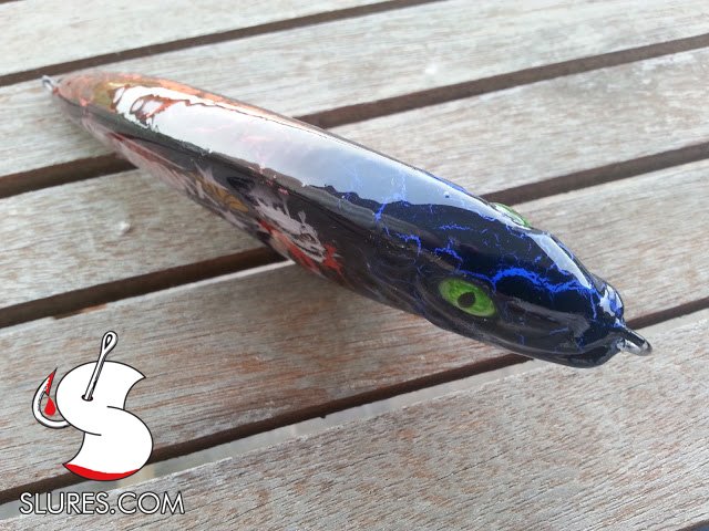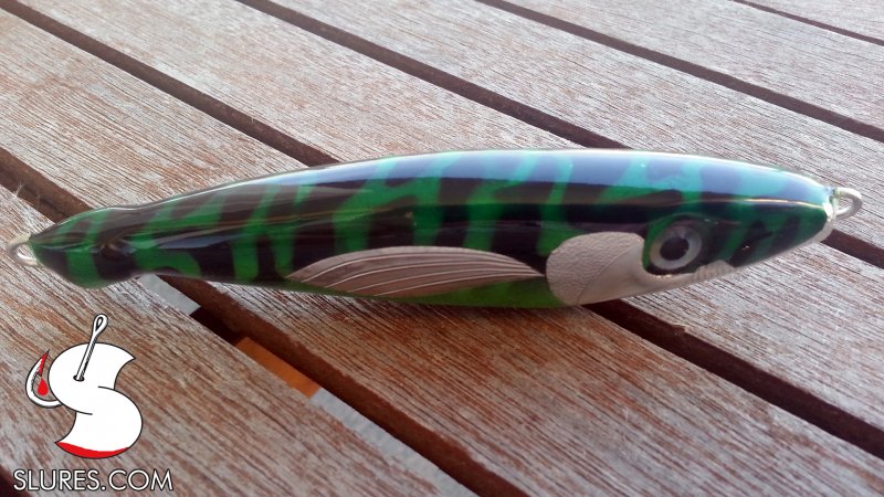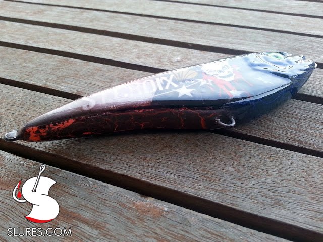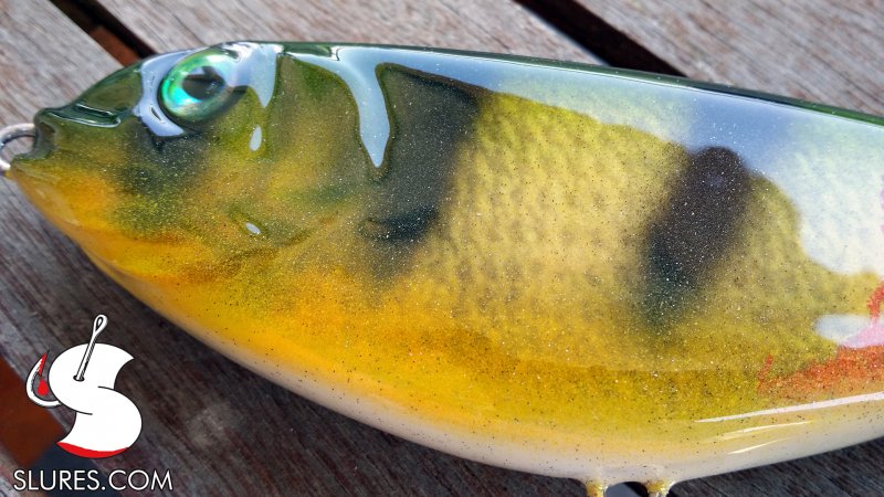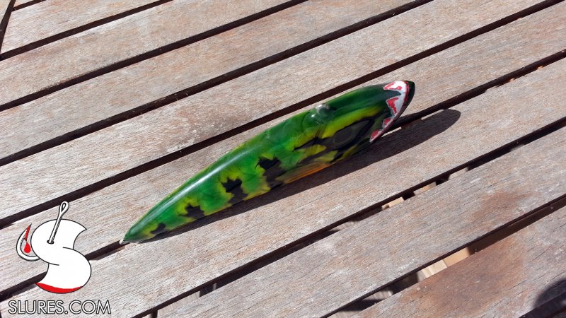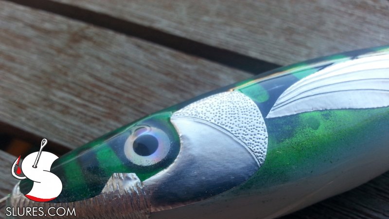 Voici mon dernier petit leurre en bois avec une bavette fait main en lexan 1mm. Il mesure 6cm pour 4gr. Il a reçu un foiling alu avec un coup d’aérographe et 2 couches de diamond 2. L’armature est full wired en inox 0.8mm.